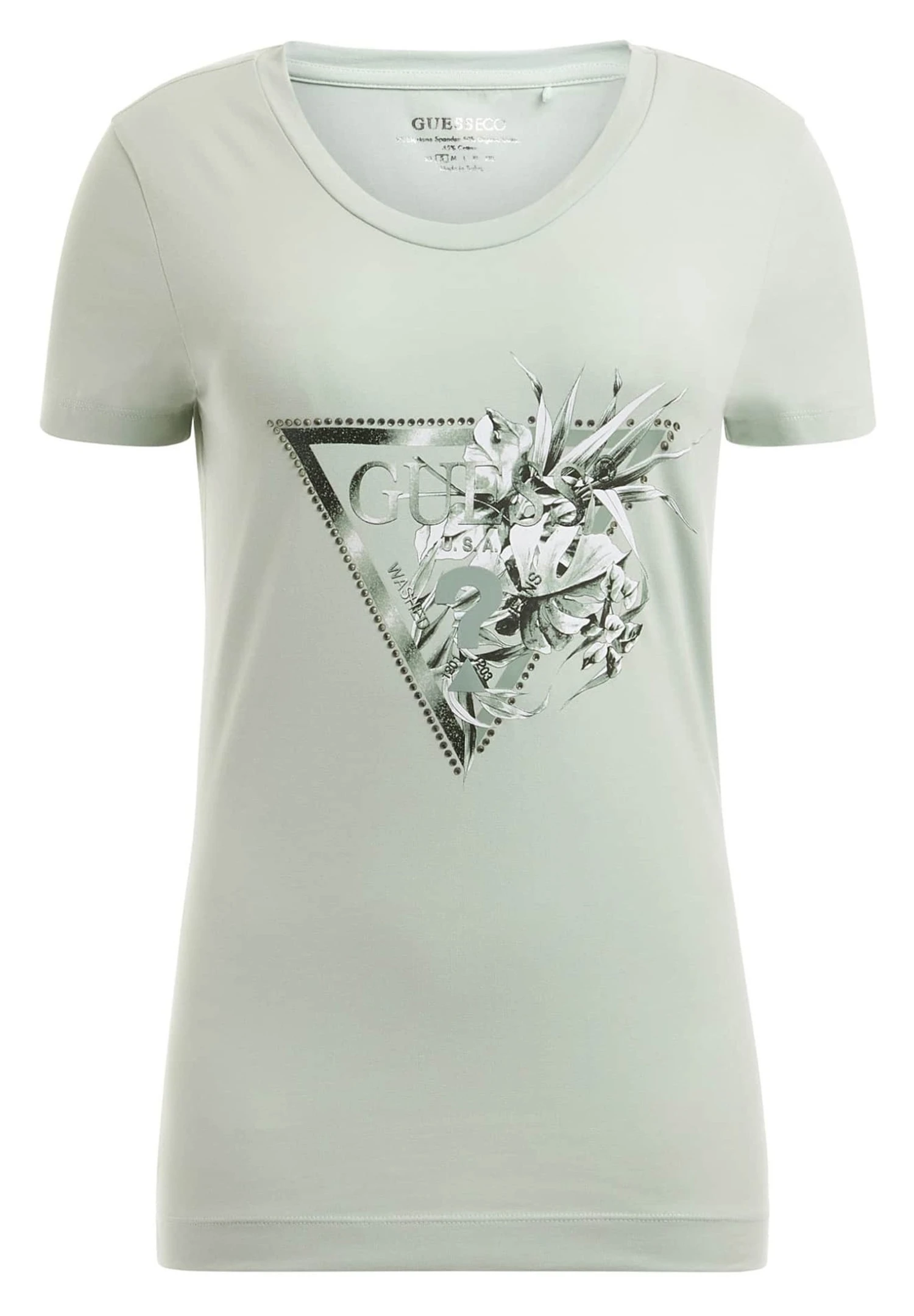 Guess Florales Logo-Dreieck – T-Shirt Imprimé – Hellgrün