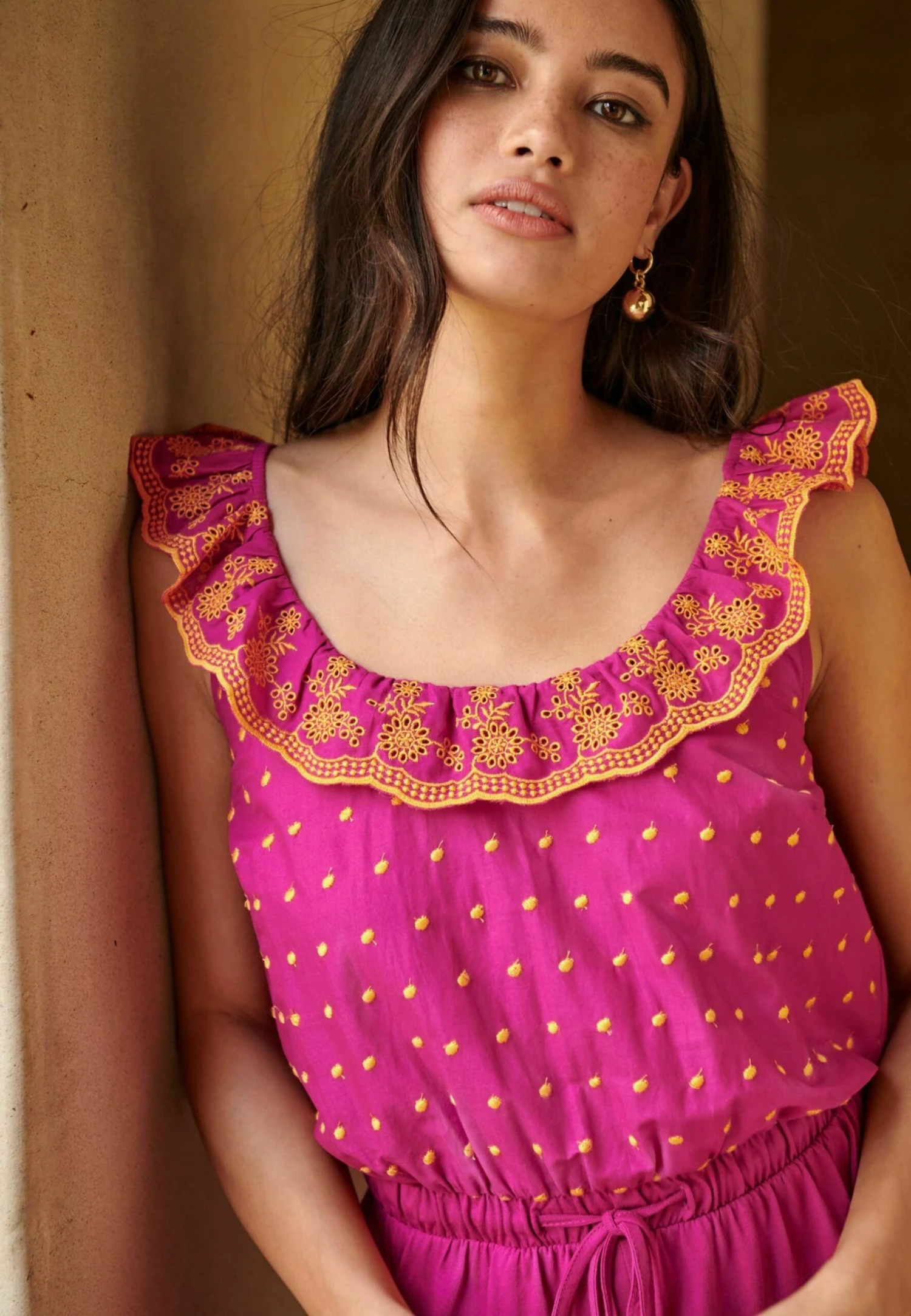 Next Sleeveless Ruffle Tie Waist Embroidered Standard – Combinaison – Pink/Orange