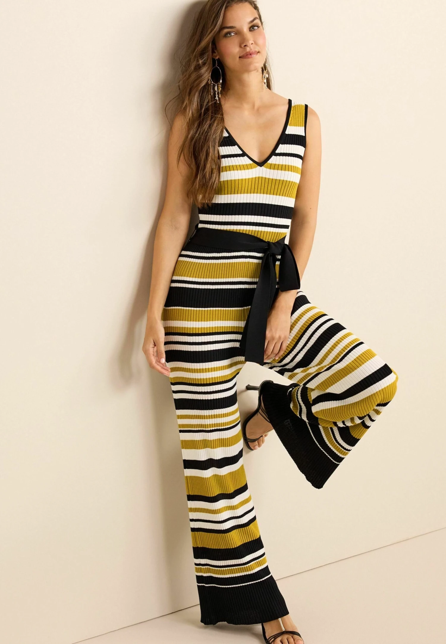 Next Tie Waist Wide Leg – Combinaison – Mustard Yellow/Black/White Stripe