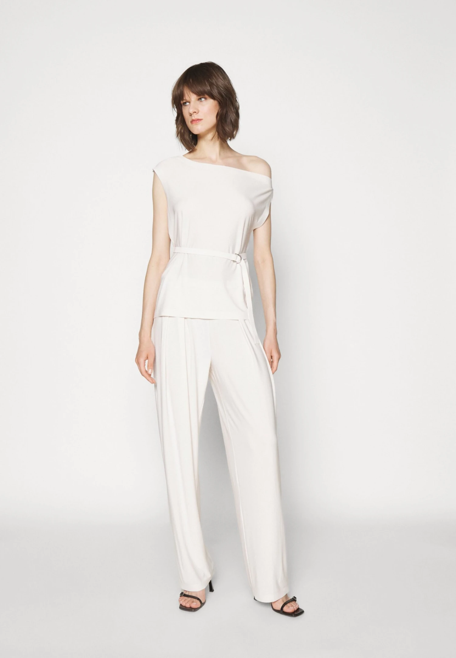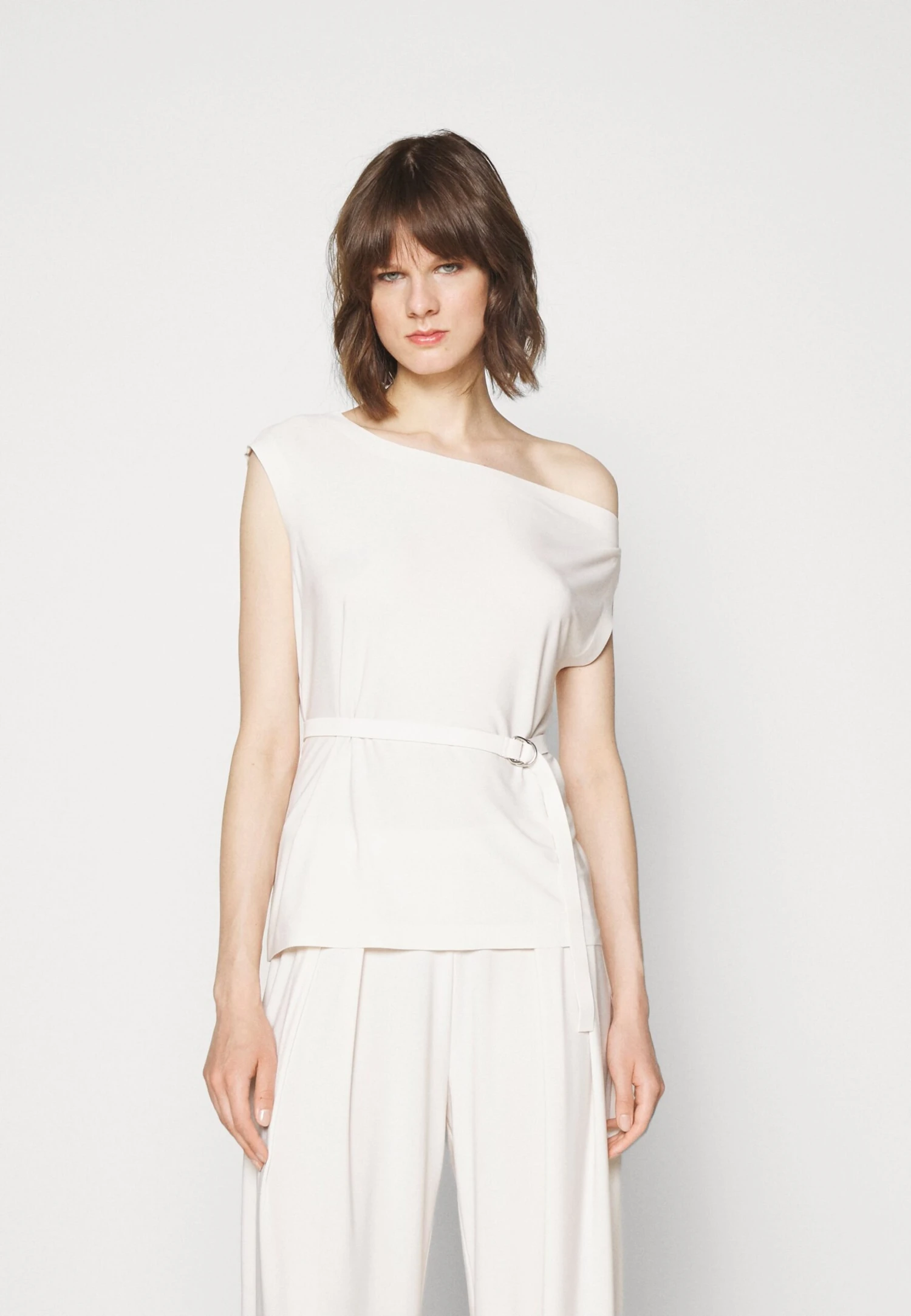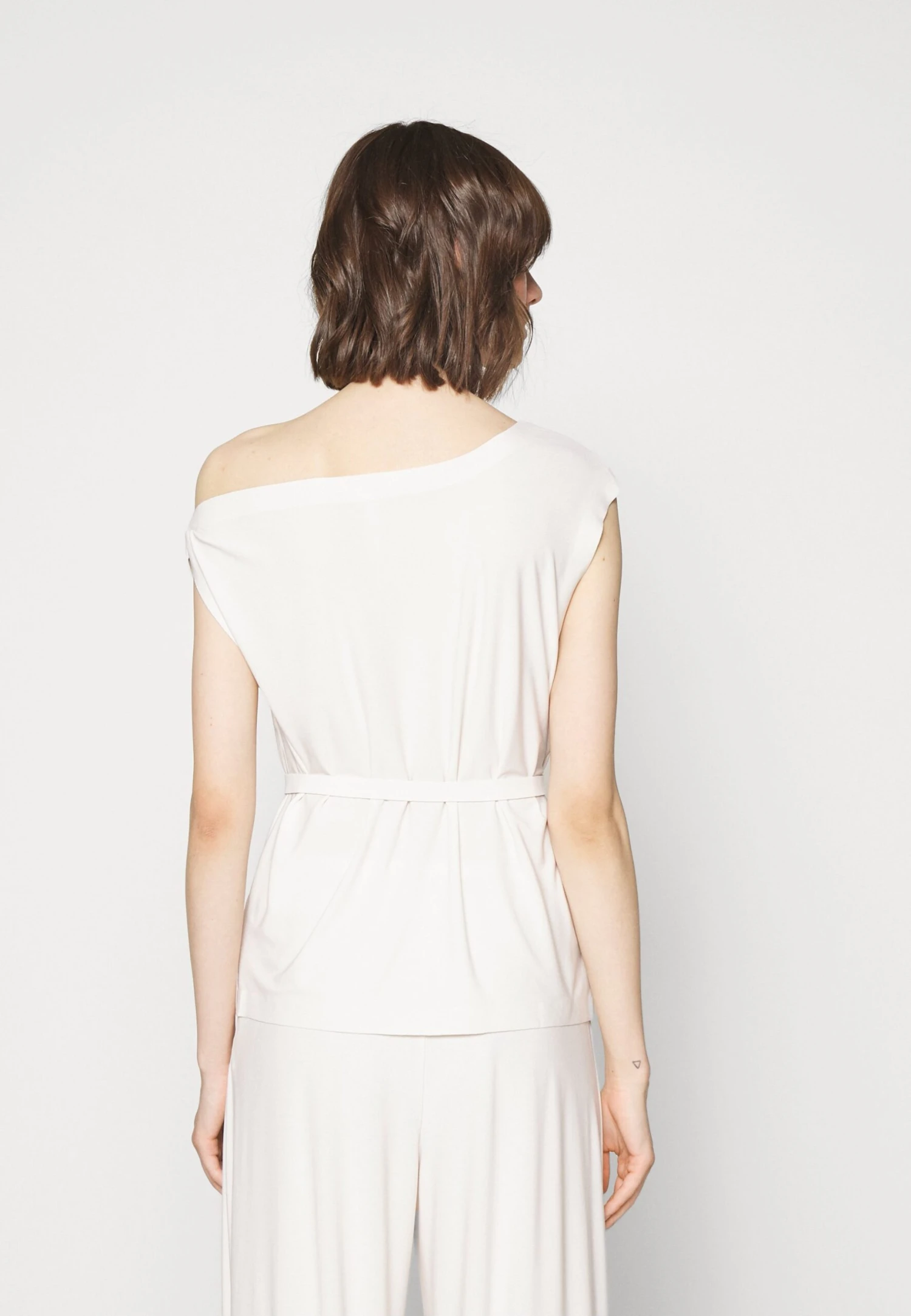 Norma Kamali Drop Shoulder – T-Shirt Imprimé – Bone